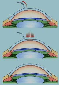 Laser is performed underneath the flap, and then the flap is replaced.